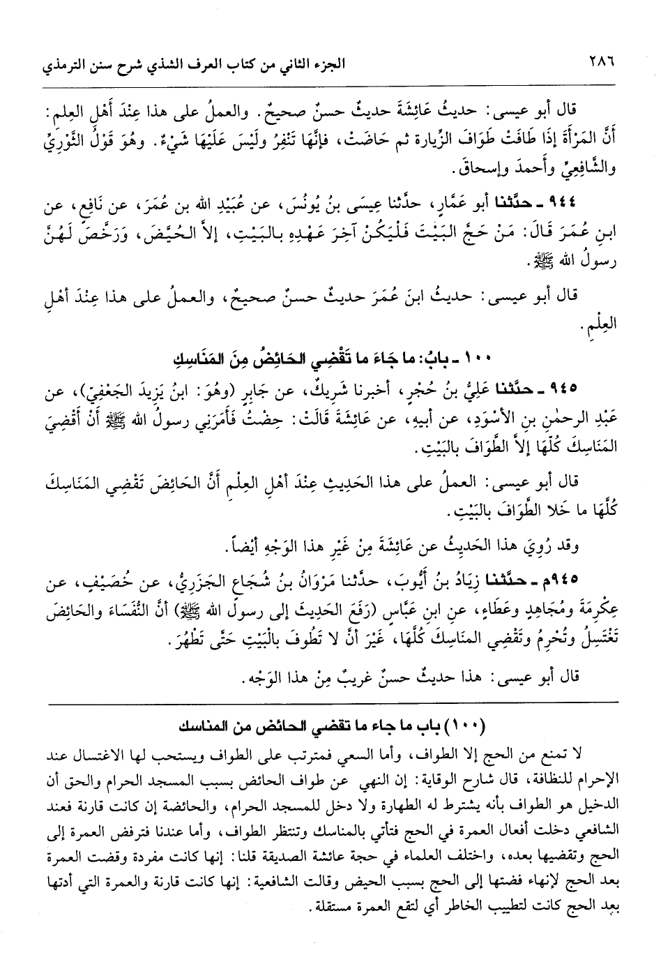 [945] لا تمنع من الحج إلا الطواف، وأما السعي فمترتب على الطواف ويستحب لها الاغتسال عند الإحرام للنظافة، قال شارح الوقاية: إن النهي عن طواف الحائض بسبب المسجد الحرام والحق أن الدخيل هو الطواف بأنه يشترط له الطهارة ولا دخل للمسجد الحرام، والحائضة إن كانت قارنة فعند الشافعي دخلت أفعال العمرة في الحج فتأتي بالمناسك وتنتظر الطواف، وأما عندنا فترفض العمرة إلى الحج وتقضيها بعده، واختلف العلماء في حجة عائشة الصديقة قلنا: إنها كانت مفردة وقضت العمرة بعد الحج لإنهاء فضتها إلى الحج بسبب الحيض وقالت الشافعية: إنها كانت قارنة والعمرة التي أدتها بعد الحج كانت لتطييب الخاطر أي لتقع العمرة مستقلة.