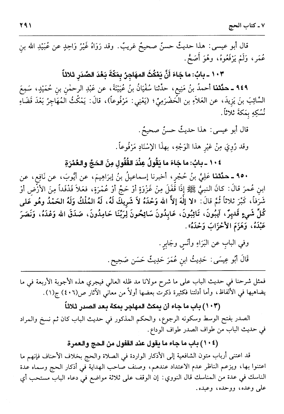[950] قد اعتنى أرباب متون الشافعية إلى الأذكار الواردة في الصلاة والحج بخلاف الأحناف فإنهم ما اعتنوا بها، ويزعم الناظر عدم الاعتداد عندهم، وصنف صاحب الهداية في أذكار الحج وسماه عدة الناسك في عدة من المناسك قال النووي: إن الوقف على ثلاثة مواضع في دعاء الباب مستحب أي على وعده، ووحده، وعبده.