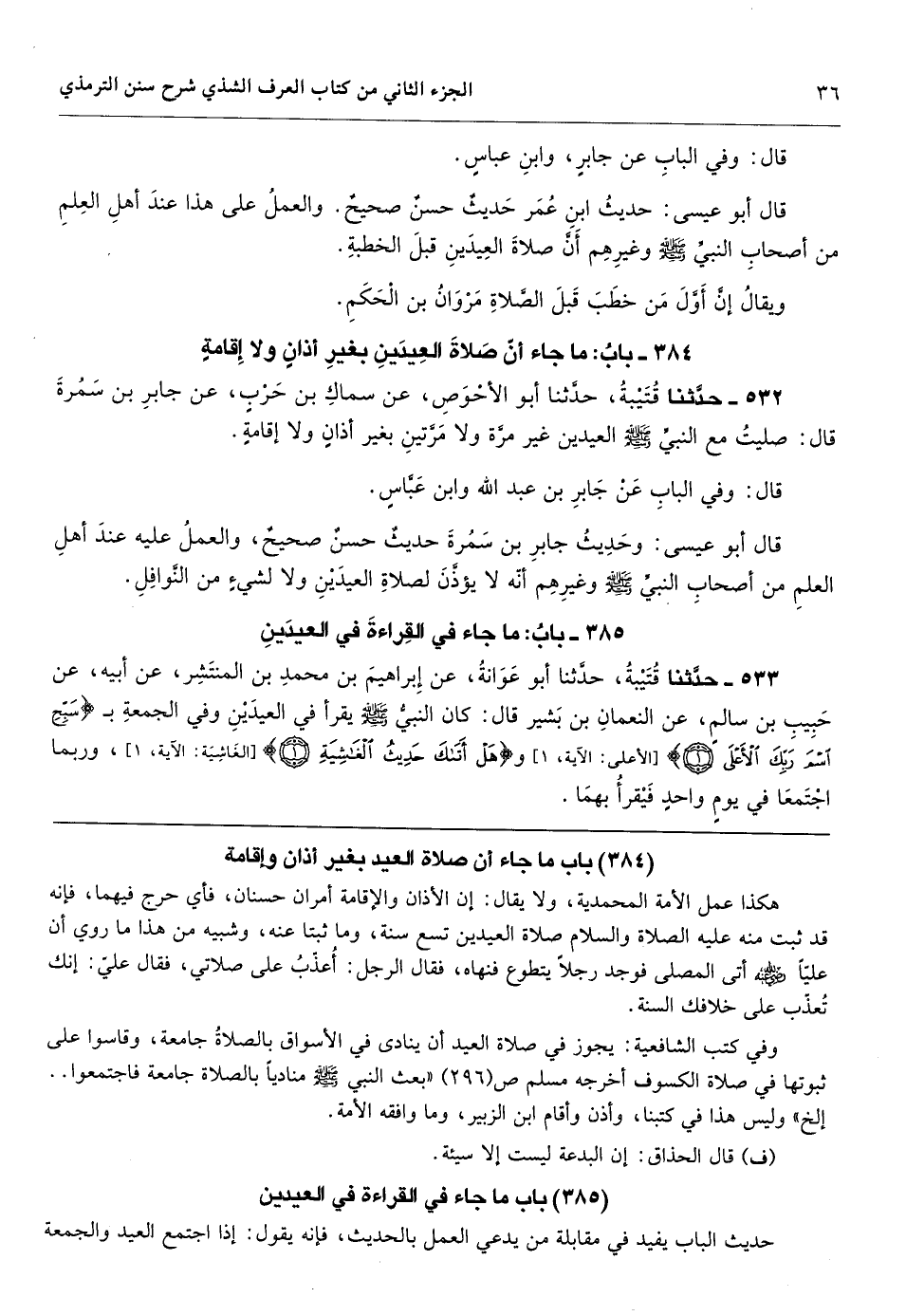 باب ما جاء أن صلاة العيد بغير أذان وإقامة
