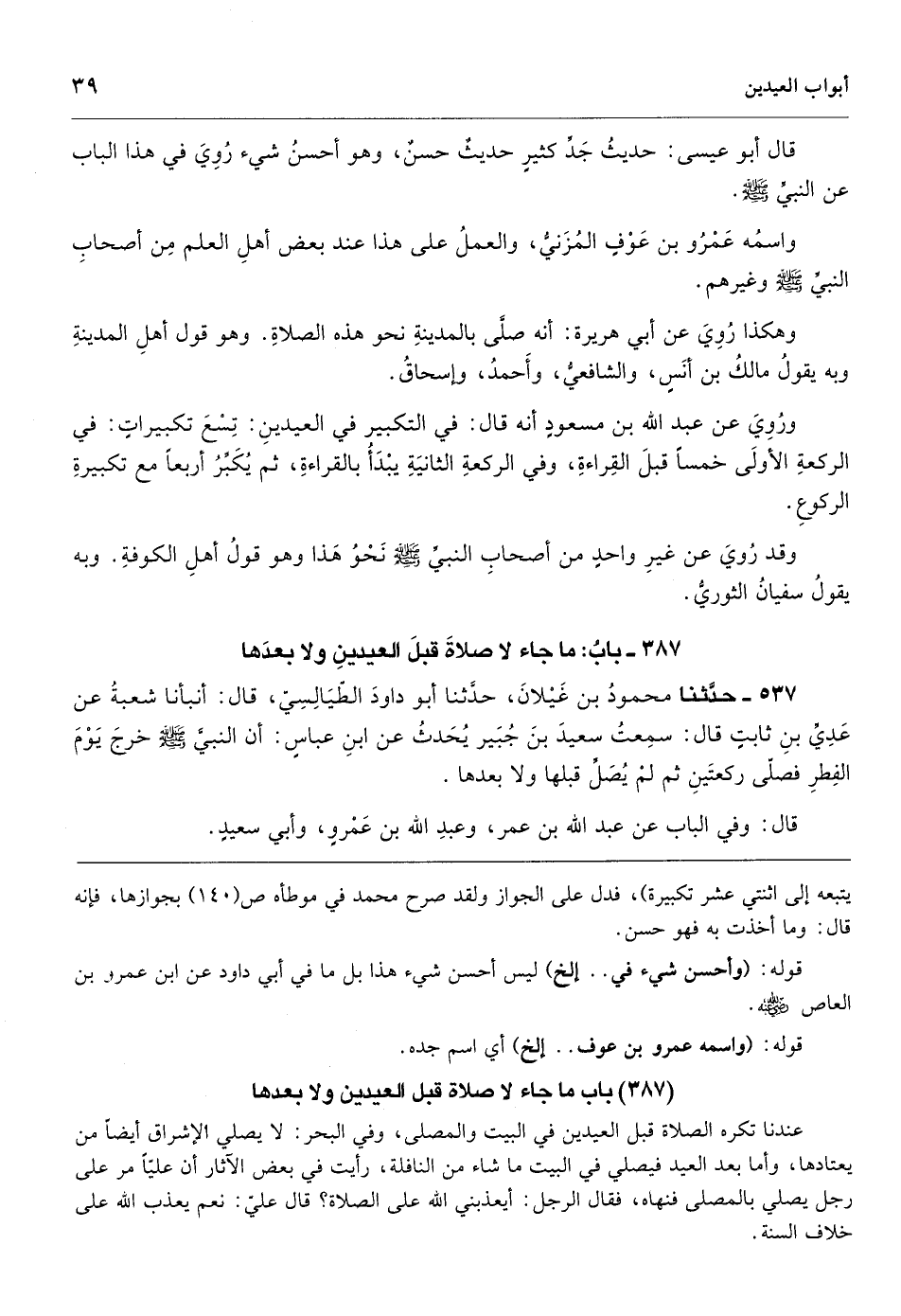 باب ما جاء لا صلاة قبل العيدين ولا بعدها