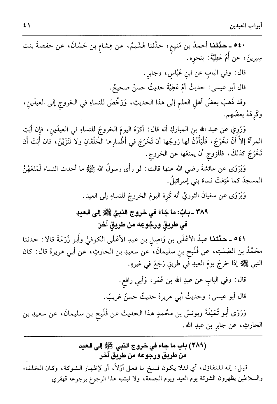 باب ما جاء في خروج النبي - صلّى الله عليه وسلّم - إلى العيد من طريق ورجوعه من طريق آخر