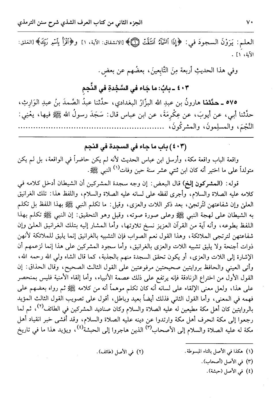 قوله: (المشركون إلخ) قال البعض: إن وجه سجدة المشركين أن الشيطان أدخل كلامه في كلامه عليه الصلاة والسلام، وأجرى لفظه على لسانه عليه الصلاة والسلام، واللفظ هذا: تلك الغرانيق العلى وإن شفاعتهن لتُرتجى، بعد ذكر اللات والعزى، وقيل: ما تكلم النبي - صَلَّى اللهُ عَلَيْهِ وَسَلَّمَ - بهذا اللفظ بل تكلم به الشيطان على لهجة النبي - صَلَّى اللهُ عَلَيْهِ وَسَلَّمَ - وعلى صورة صوته، وقيل وهو التحقيق: إن النبي - صَلَّى اللهُ عَلَيْهِ وَسَلَّمَ - تكلم بهذا اللفظ بطوعه، وأنه آية من القرآن العزيز نسخ تلاوتها، وأما المشار إليه بتلك الغرانيق العلى وإن شفاعتهن لترتجى الملائكة، وهذا القول نعم الصواب فإن التشبيه بالغرانيق إنما يليق للملائكة لأنهن ذوات أجنحة ولا يليق تشبيه اللات والعزى بالغرانيق، وأما سجود المشركين على هذا إنما لزعمهم أن الإشارة إلى اللات والعزى، أو يكون تحقق السجدة منهم بالجذبة، كما قال الشاه ولي الله رحمه الله، وأتى العيني والحافظ بروايتين صحيحتين مرفوعتين على القول الثالث الصحيح، وقال الحذاق: إن القول الأول من اختراع الزنادقة فإنه يرتفع على ذلك عصمة الأنبياء، وأما إلقاء الأمنية فليس بمنحصر على هذا، ولعل معنى الإلقاء على لسانه أنه كان تكلم موهماً أنه من كلامه - صَلَّى اللهُ عَلَيْهِ وَسَلَّمَ - ثم رواه بعضهم على فهمه في المعنى، وأما القول الثاني فذلك أيضاً بعيد وباطل، أقول على تصويب القول الثالث المؤيد بالروايتين كان أهل مكة مطيعين له عليه الصلاة والسلام وكان صناديد المشركين في الطائف، ثم لما رجعوا إلى مكة انحرف أهل مكة وارتدوا عن دينه عليه الصلاة
