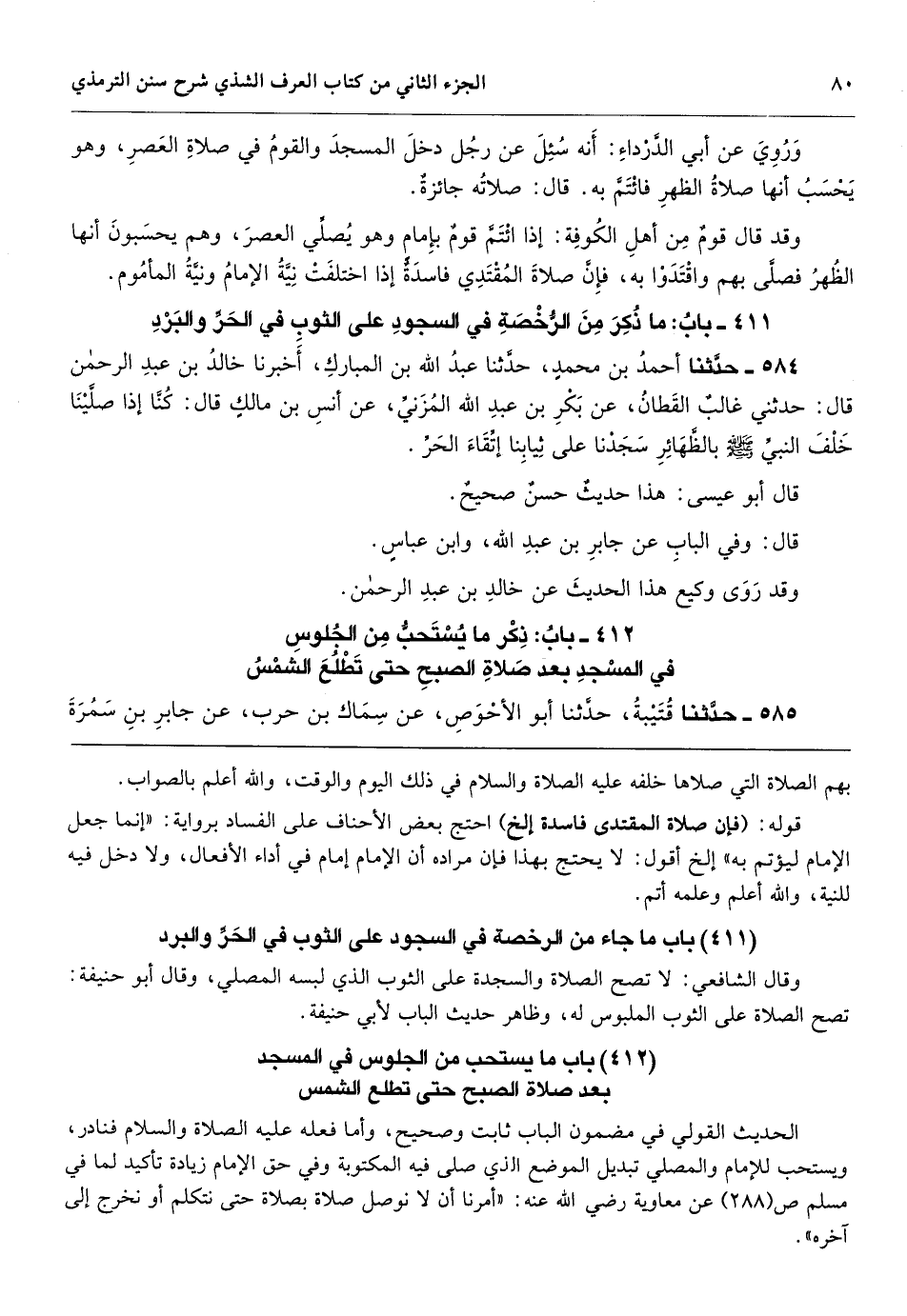 باب ما جاء من الرخصة في السجود على الثوب في الحرّ والبرد