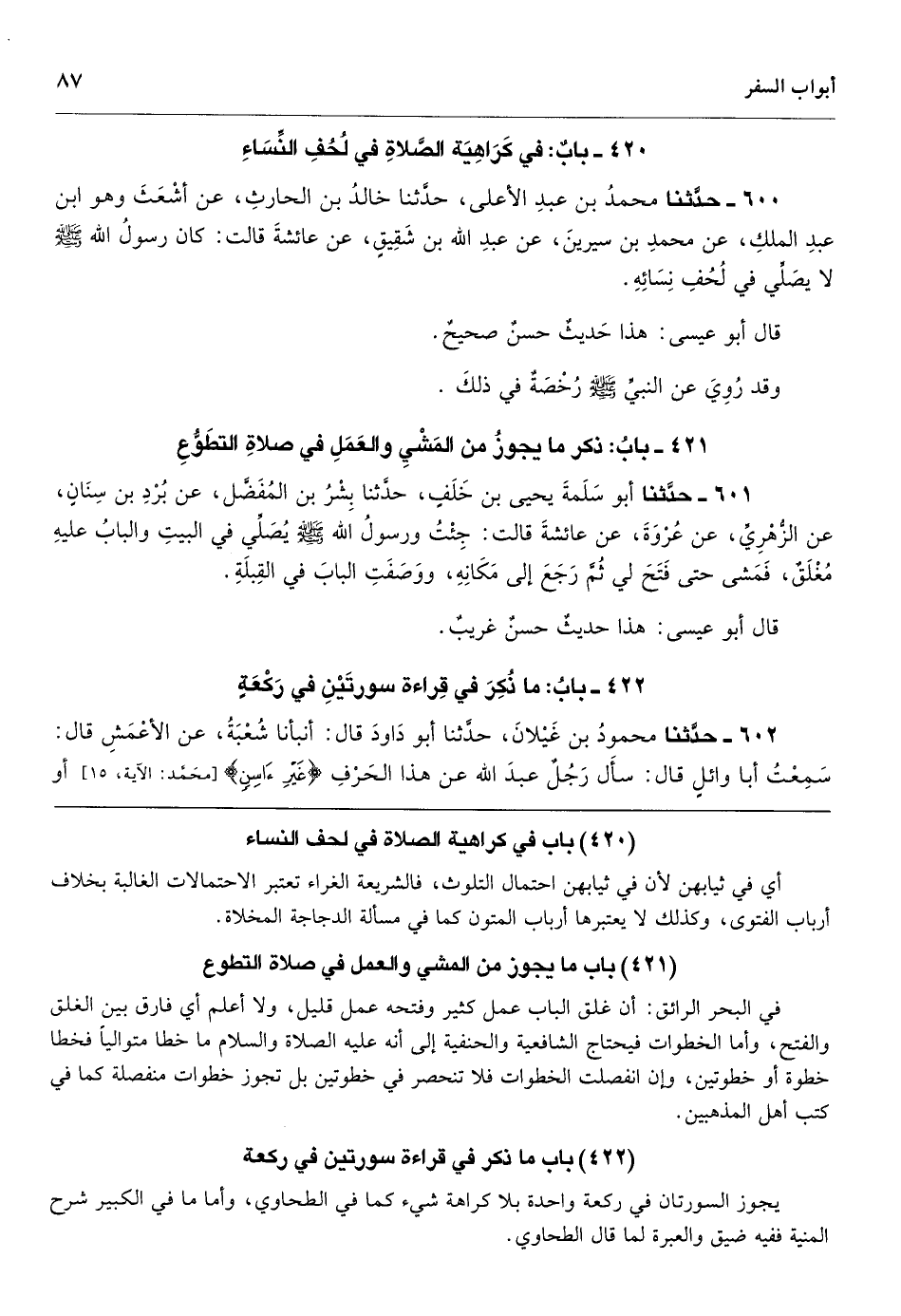 [601] في البحر الرائق: أن غلق الباب عمل كثير وفتحه عمل قليل، ولا أعلم أي فارق بين الغلق والفتح، وأما الخطوات فيحتاج الشافعية والحنفية إلى أنه عليه الصلاة والسلام ما خطا متوالياً فخطا خطوة أو خطوتين، وإن انفصلت الخطوات فلا تنحصر في خطوتين بل تجوز خطوات منفصلة كما في كتب أهل المذهبين.