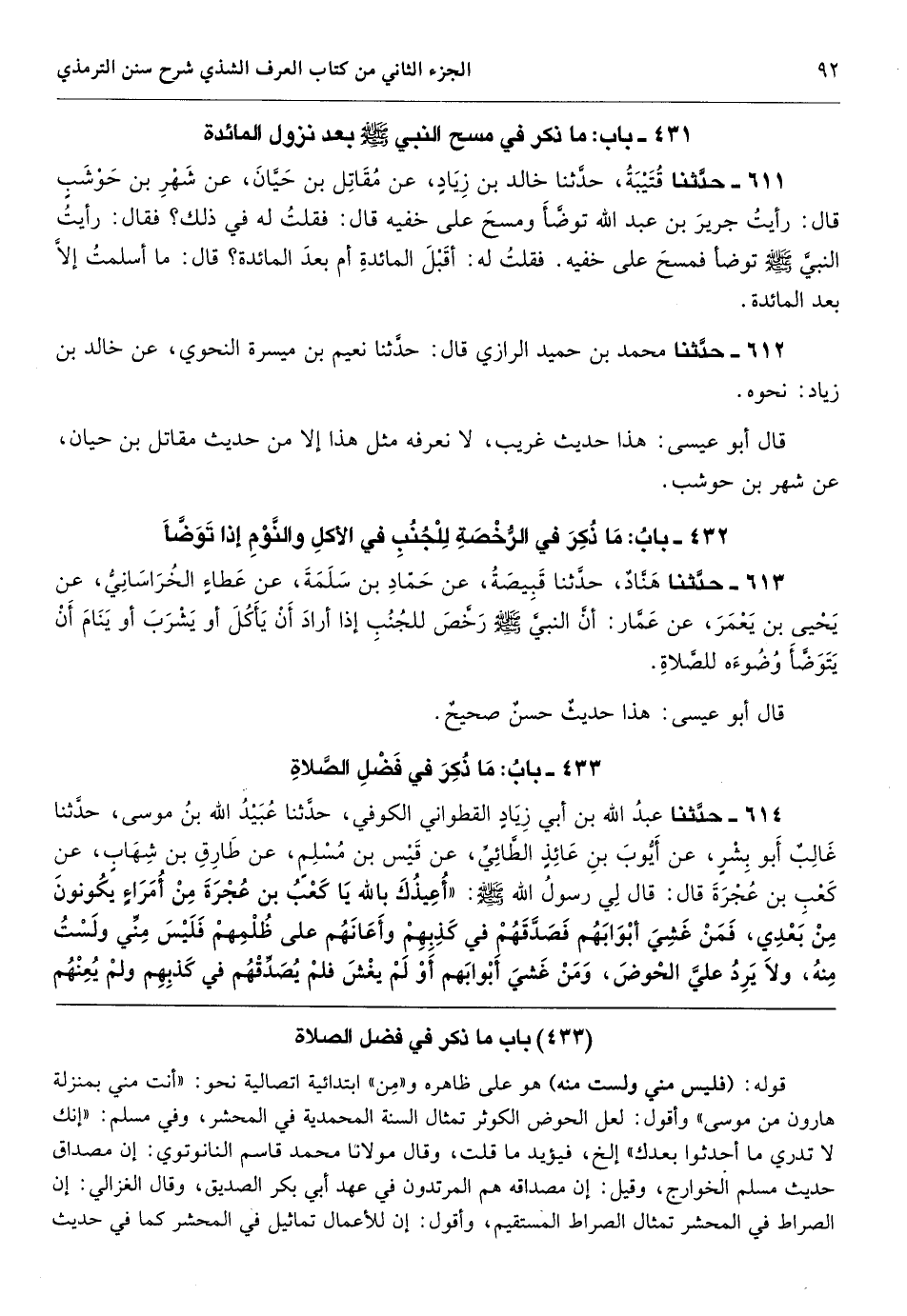 [614] قوله: (فليس مني ولست منه) هو على ظاهره و «مِن» ابتدائية اتصالية نحو: «أنت مني بمنزلة هارون من موسى» وأقول: لعل الحوض الكوثر تمثال السنة المحمدية في المحشر، وفي مسلم: «إنك لا تدري ما أحدثوا بعدك» إلخ، فيؤيد ما قلت، وقال مولانا محمد قاسم النانوتوي: إن مصداق حديث مسلم الخوارج، وقيل: إن مصداقه هم المرتدون في عهد أبي بكر الصديق، وقال الغزالي: إن الصراط في المحشر تمثال الصراط المستقيم، وأقول: إن للأعمال تماثيل في المحشر كما في حديث