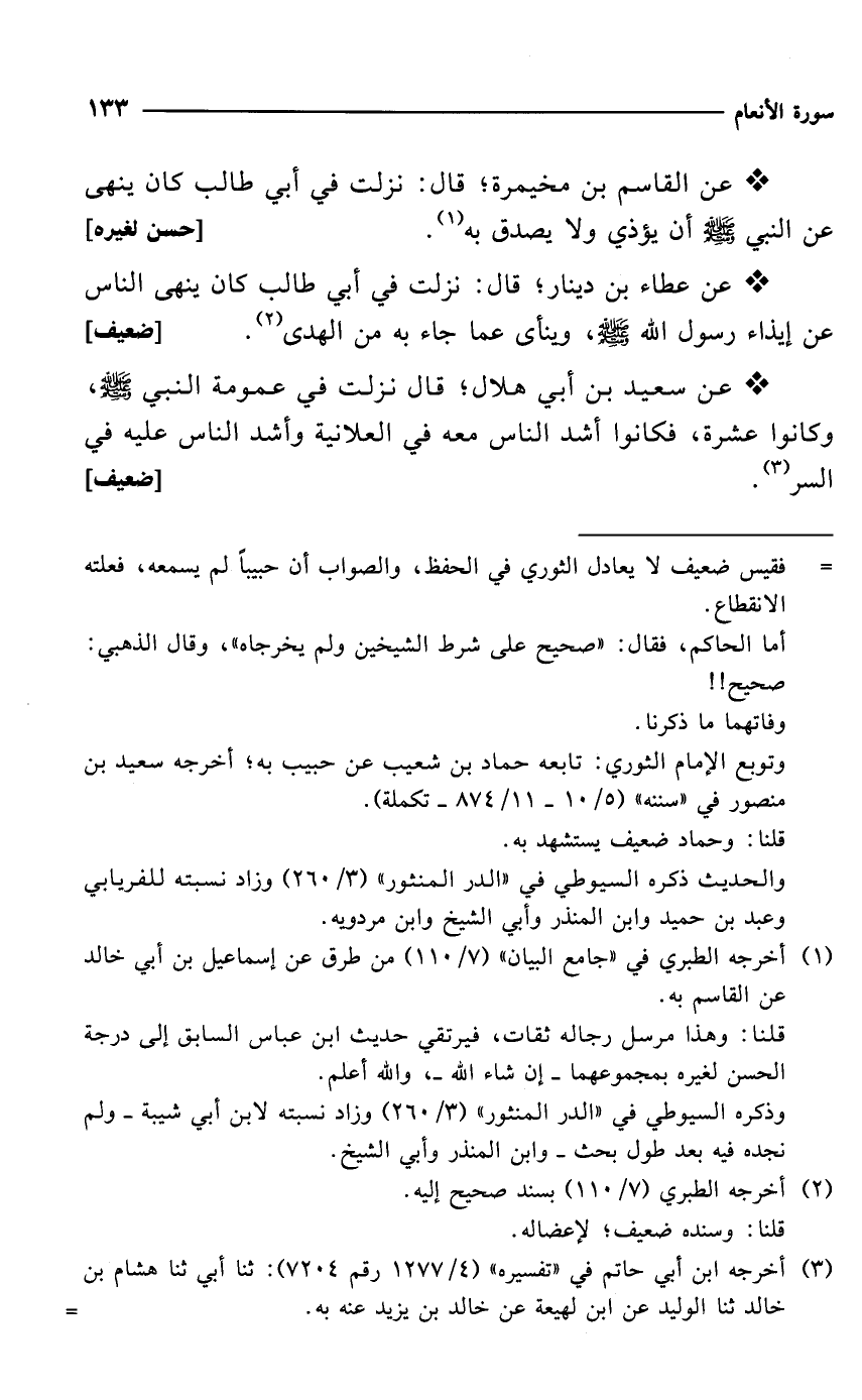 * عن سعيد بن أبي هلال؛ قال نزلت في عمومة النبي - صلى الله عليه وسلم -، وكانوا عشرة، فكانوا أشد الناس معه في العلانية وأشد الناس عليه في السر (¬3). [ضعيف]