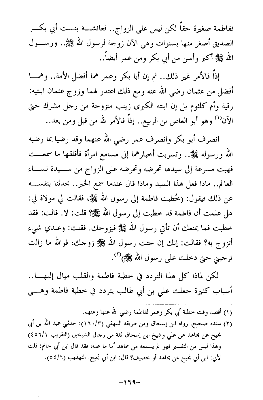 (¬1) أقصد وقت خطبة أبي بكر وعمر لفاطمة رضي الله عنها وعنهم.