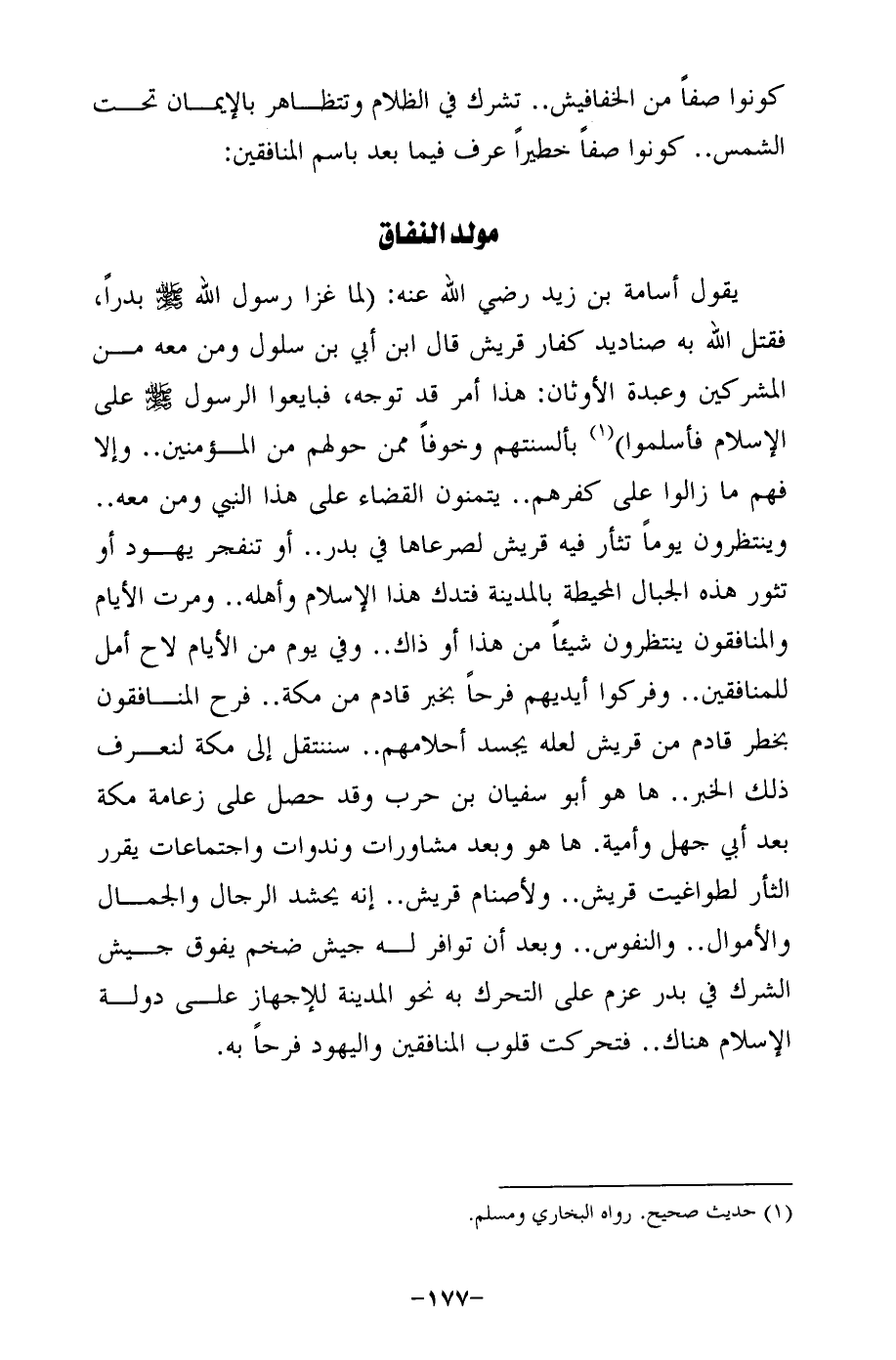 كونوا صفًا من الخفافيش .. تشرك في الظلام وتتظاهر بالإيمان تحت الشمس .. كونوا صفًا خطيرًا عرف فيما بعد باسم المنافقين: