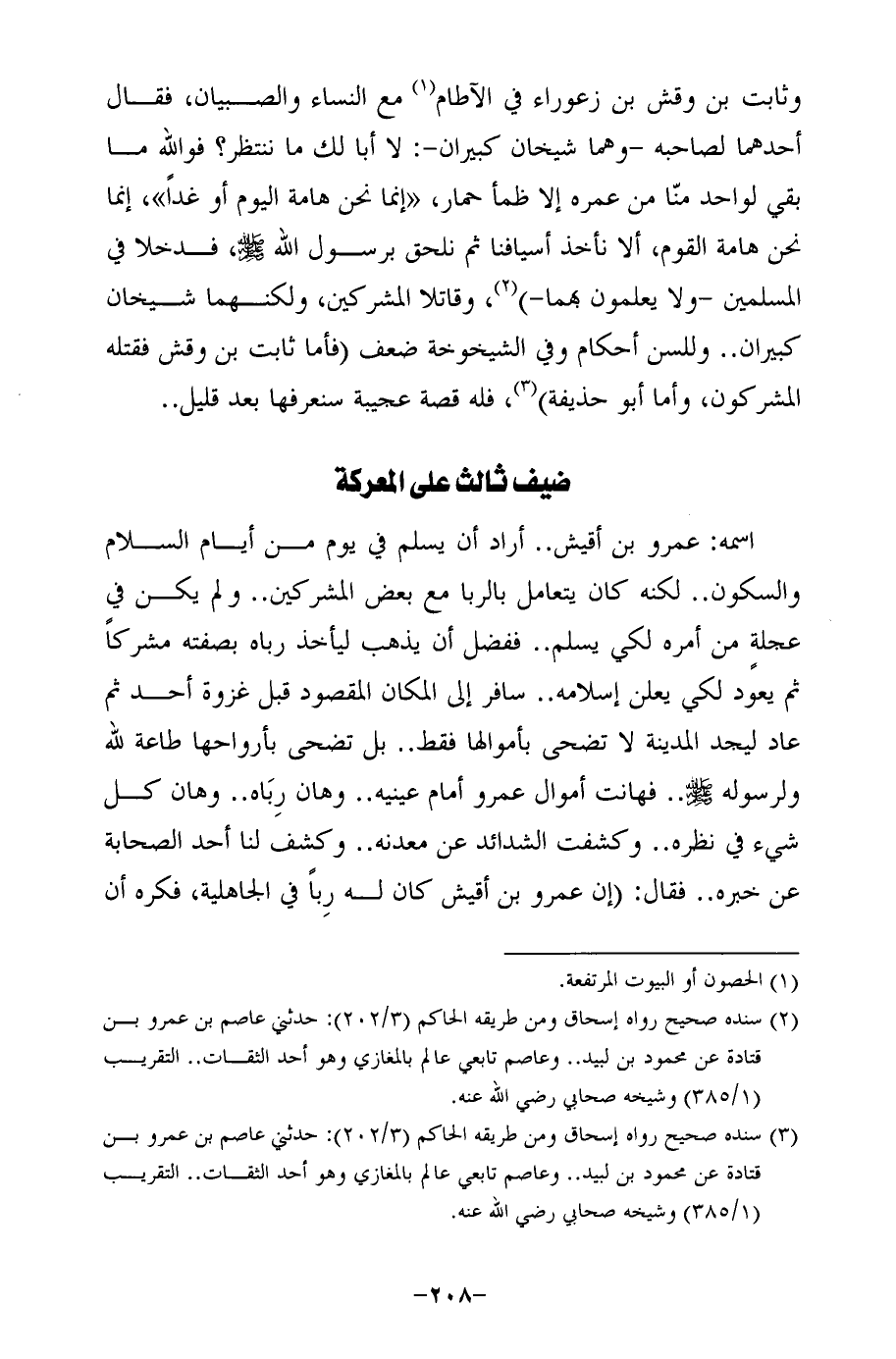 (¬3) سنده صحيح رواه إسحاق ومن طريقه الحاكم (3/ 202): حدثني عاصم بن عمرو بن قتادة عن محمود بن لبيد .. وعاصم تابعي عالم بالمغازي وهو أحد الثقات .. التقريب (1/ 385) وشيخه صحابي رضي الله عنه.