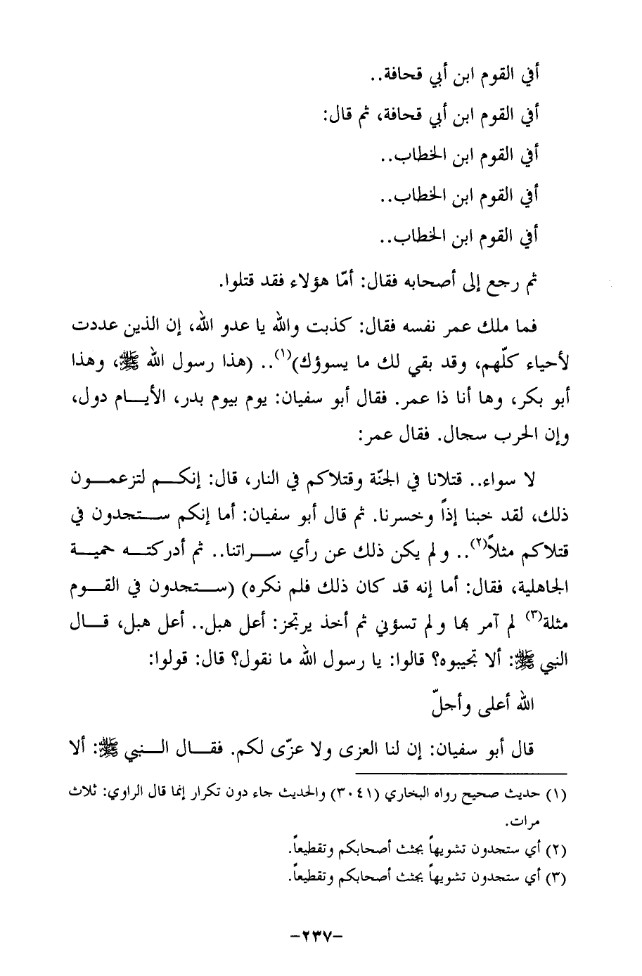 قال أبو سفيان: إن لنا العزى ولا عزّى لكم. فقال النبي - صلى الله عليه وسلم -: ألا