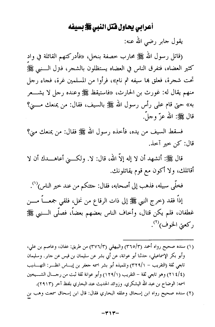 أعرابي يحاول قتل النبي (صلى الله عليه وسلم) بسيفه