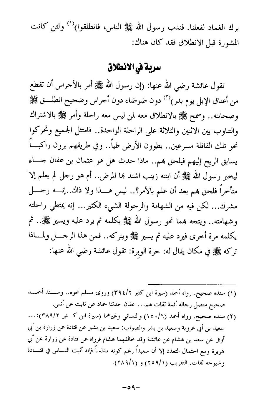 (¬2) سنده صحيح. رواه أحمد (6/ 150) والنسائيُّ وغيرهما (سيرة ابن كثير 2/ 389): ... سعيد بن أبي عروبة وسعيد بن بشر والصواب: سعيد بن بشير عن قتادة عن زرارة بن أبي أوفى عن سعد بن هشام عن عائشة وقد خالفهما هشام فرواه عن قتادة عن زرارة عن أبي هريرة ومع احتمال التعدد إلا أن سعيدًا رغم كونه مدلسًا فإنه أثبت الناس في قتادة وشيوخه ثقات. التقريب (1/ 259) و (1/ 289).
