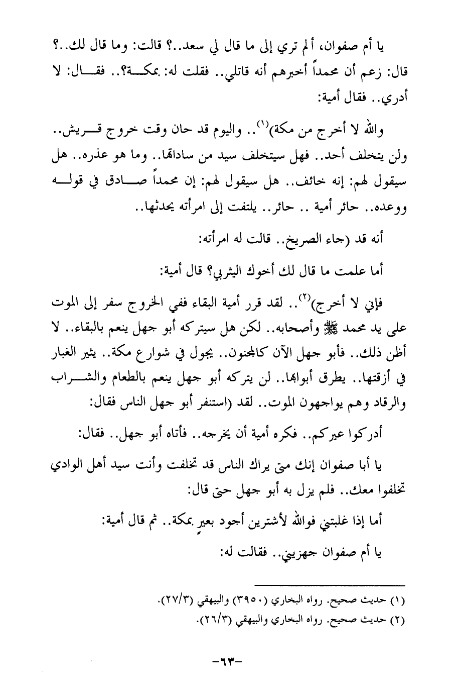 يا أم صفوان، ألم تري إلى ما قال لي سعد .. ؟ قال: وما قال لك .. ؟ قال: زعم أن محمدًا أخبرهم أنه قاتلي .. فقلت له: بمكة؟ .. فقال: لا أدري .. فقال أمية: