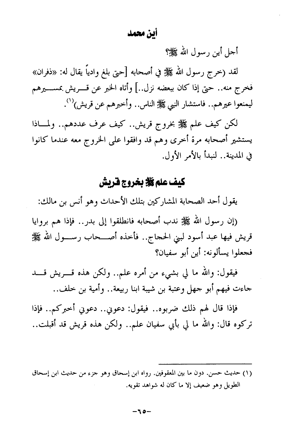(إن رسول الله - صلى الله عليه وسلم - ندب أصحابه فانطلقوا إلى بدر .. فإذا هم بروايا قريش فيها عبد أسود لبني الحجاج .. فأخذه أصحاب رسول الله - صلى الله عليه وسلم - فجعلوا يسألونه: أين أبو سفيان؟