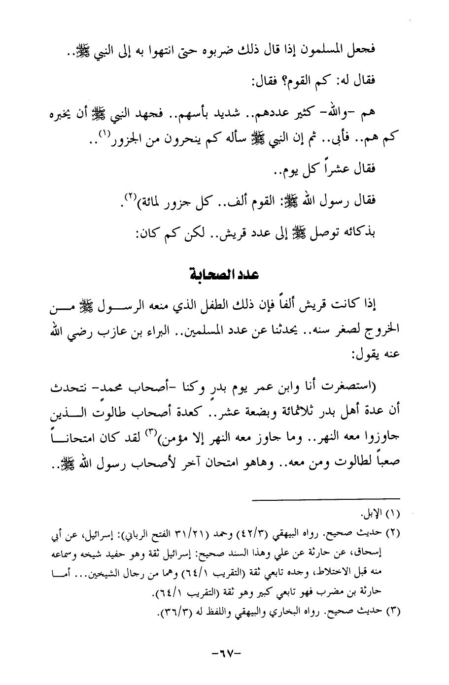 إذا كانت قريش ألفًا فإن ذلك الطفل الذي منعه الرسول - صلى الله عليه وسلم - من الخروج لصغر سنه .. يحدثنا عن عدد المسلمين .. البراء بن عازب رضي الله عنه يقول: