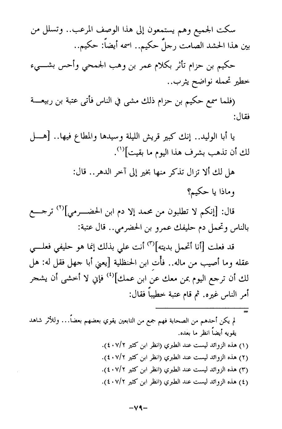 (فلما سمع حكيم بن حزام ذلك مشى في الناس فأتى عتبة بن ربيعة فقال: