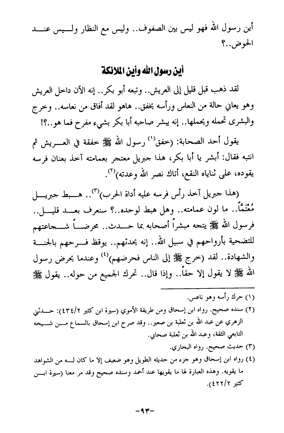 (¬2) سنده صحيح. رواه ابن إسحاق ومن طريقة الأموي (سيرة ابن كثير 2/ 434): حدثني الزهري عن عبد الله بن ثعلبة بن صعير .. وقد صرح ابن إسحاق بالسماع من شيخه التابعي الثقة، وعبد الله بن ثعلبة صحابيّ.