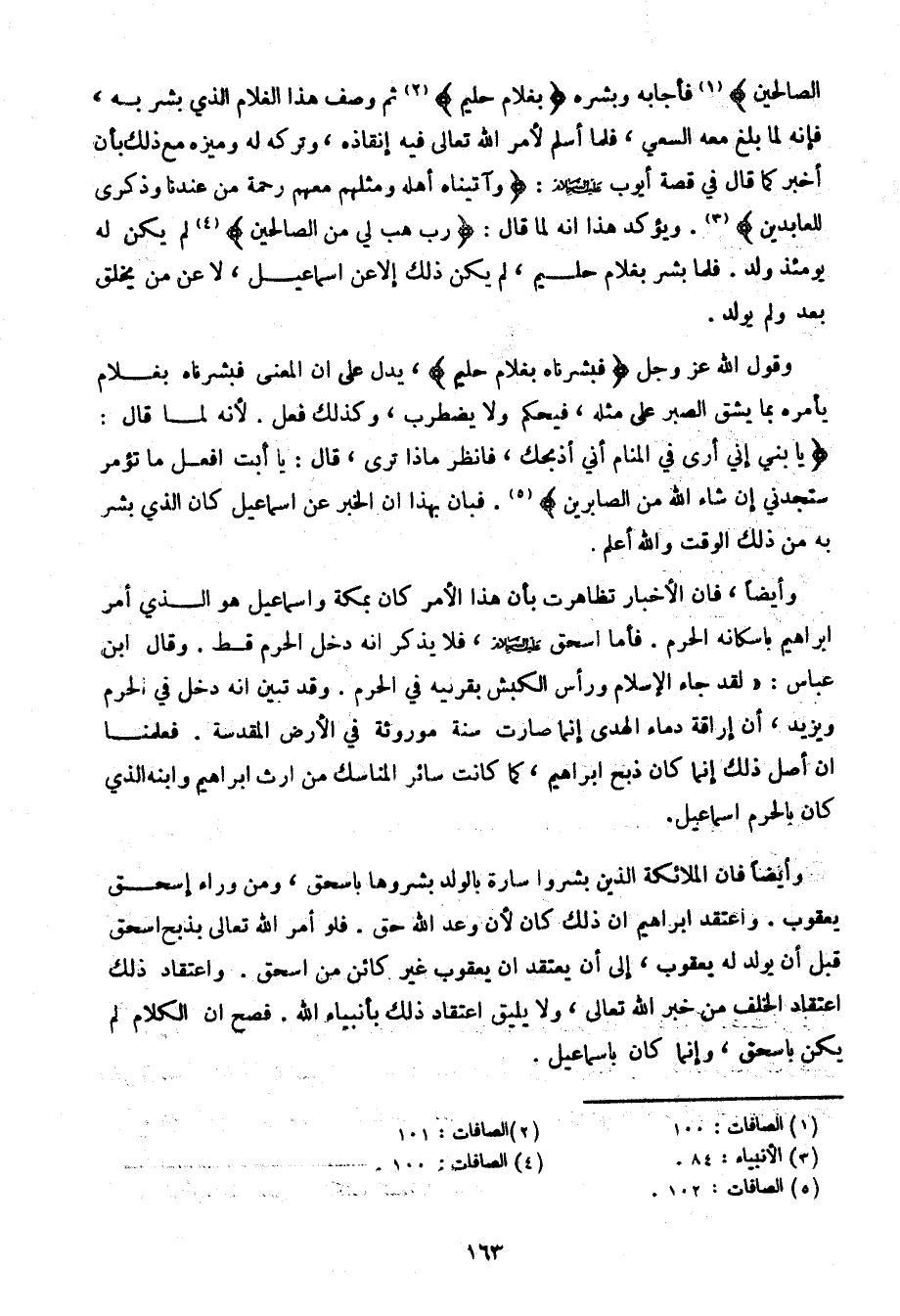 وقول الله عز وجل} فبشرناه بغلام حليم {، يدل على أن المعنى فبشرناه بغلام يأمره بما يشق الصبر على مثله، فيحكم ولا يضطرب، وكذلك فعل. لأنه لما قال:} يا بني إني أرى في المنام إني أذبحك، فانظر ماذا ترى، قال: يا أبت أفعل ما تؤمر ستجدني إن شاء الله من الصابرين {. فبان بهذا أن الخبر عن إسماعيل كان الذي بشر به من ذلك الوقت والله أعلم.
