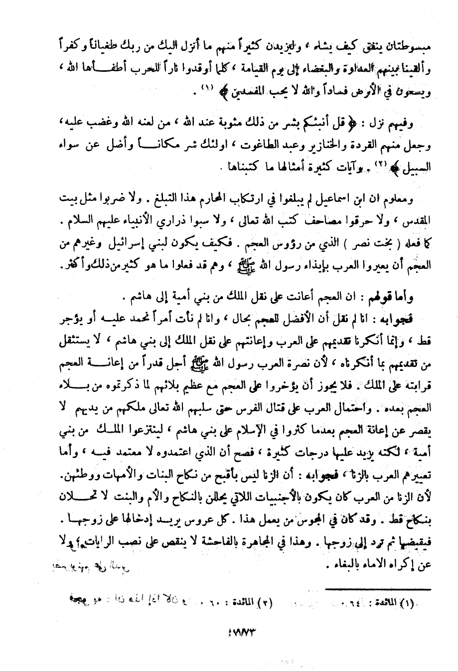 وفيهم نزل:} قل أنبئكم بشر من ذلك مثوبة عند الله، من لعنه الله وغضب عليه، وجعل منهم القردة والخنازير وعبد الطاغوت، أولئك شر مكانًا وأضل عن سواء السبيل {. وآيات كثيرة أمثالها ما كتبناها.