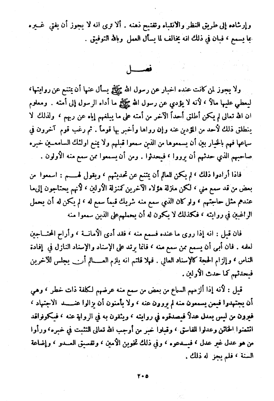 فإذا أرادوا ذلك، لم يكن للعالم أن يمتنع عن تحديثهم، ويقول لهم: اسمعوا من بعض من قد سمع مني، لكن منزلة هؤلاء الآخرين كمنزلة الأولين، لأنهم يحتاجون إلى ما عندهم مثل حاجتهم، ولو كان الذي سمع منه شريك قيمًا سمع له، لم يكن له أن يحمل الراغبين في روايته، فكذلك لا يكون له أن يحملهم على الذين سمعوا منه