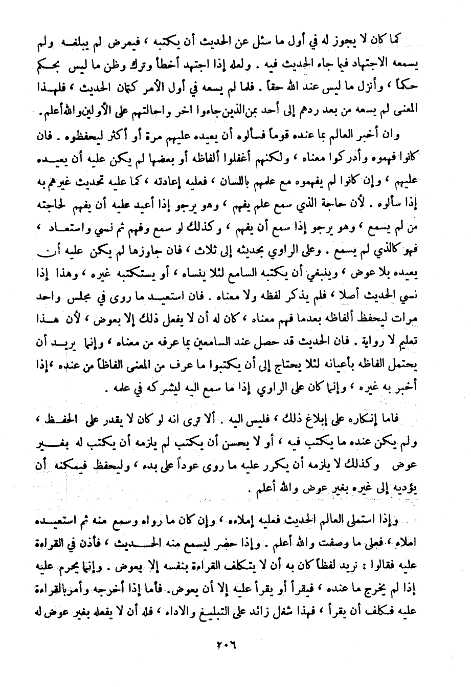 كما كان لا يجوز له في أول ما سئل عن الحديث أن يكتبه، فيعرض لم يبلغه ولم يسمعه الاجتهاد فيما جاء الحديث فيه. ولعله إذا اجتهد أخطأ وترك وظن ما ليس بحكم حكمًا، وأنزل ما ليس عند الله حقًا. فلما لم يسعه في أول الأمر كتمان الحديث، فلهذا المعنى لم يسعه من بعد ردهم إلى أحد بمن الذين جاءوا أخر وإحالتهم على الأولين والله أعلم.