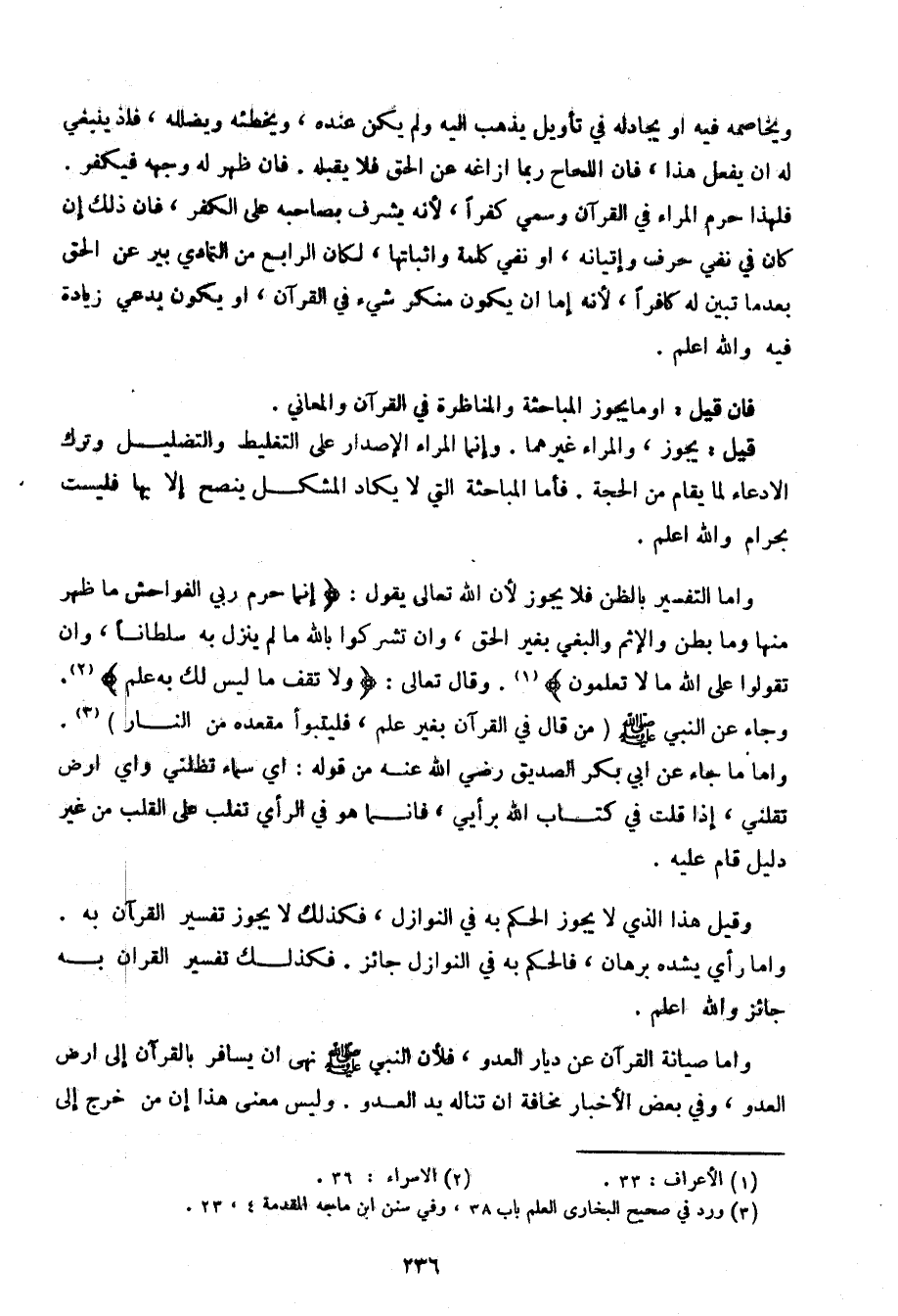 فإن قيل: أو ما يجوز المباحثة والمناظرة في القرآن والمعاني.