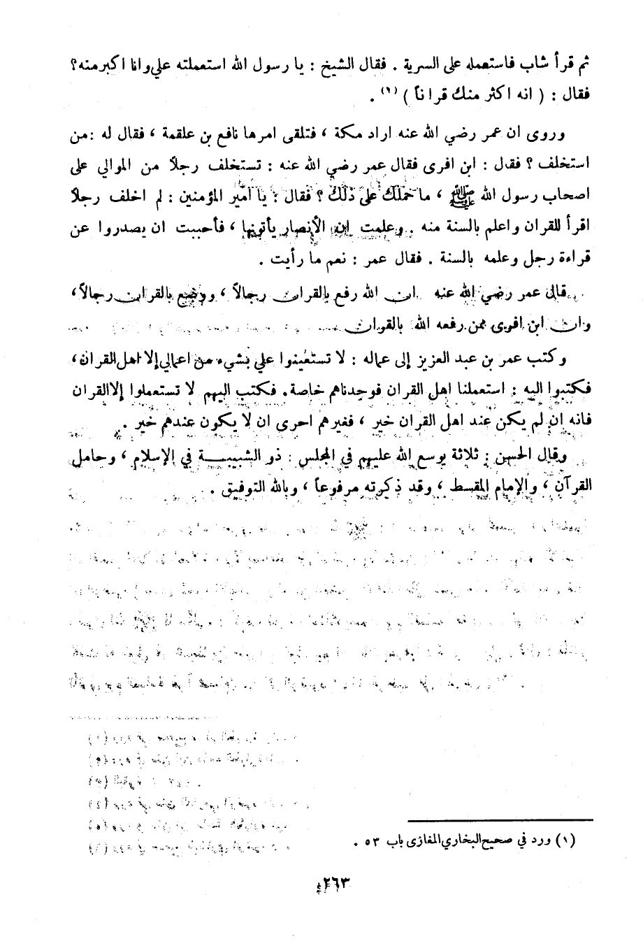 ثم قرأ شاب فاستعمله على السرية. فقال الشيخ: يا رسول الله استعملته علي وأنا أكبر منه؟