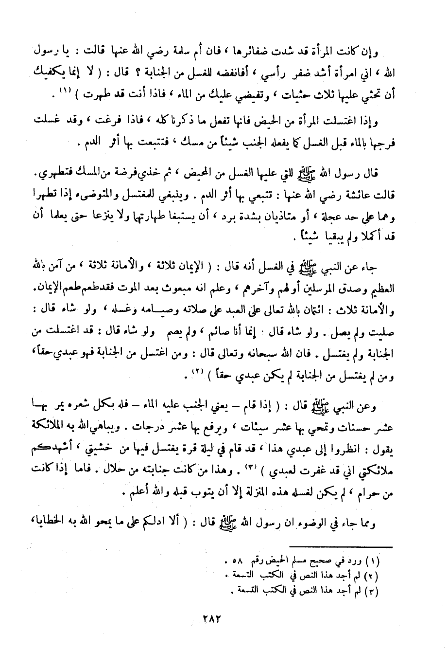 قال رسول الله صلى الله عليه وسلم التي عليها الغسل من المحيض، ثم خذي فرضة من المسك فتطهري. قالت عائشة رضي الله عنها: تتبعي بها أثر الدم. وينبغي للمغتسل والمتوضئ إذا تطهرا وهما على حد عجلة، أو متاذيان بشدة برد، أن يستبغا طهارتهما ولا ينزعا حتى يعلما أن قد أكملا ولم يبقيا شيئًا.