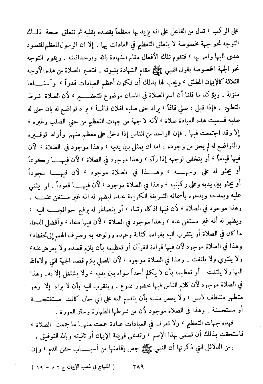 فهذه جهات التعظيم، ولا تعرف في العبادات عبادة جمعت منها ما جمعت الصلاة، فاستحقت بذلك أن تسمى بهذا الاسم، وتدعى قرينة الإيمان أو ثانيته وبالله التوفيق.
