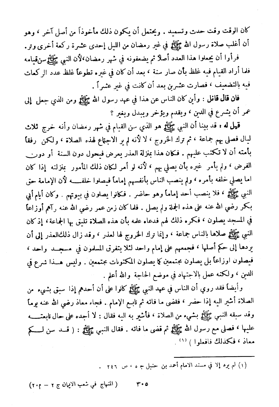 فإن قال قائل: وأين كان الناس عن هذا في عهد رسول الله صلى الله عليه وسلم ومن الذي جعل إلى عمر أن يشرع في الدين، ويقدم ويؤخر ويبدل ويغير؟