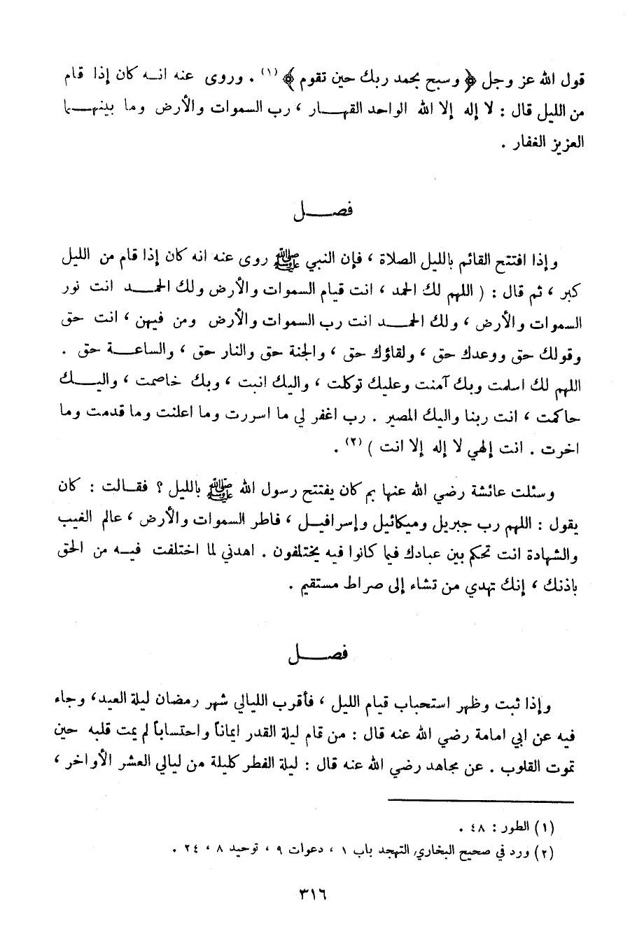 وإذا افتتح القائم بالليل الصلاة، فإن النبي صلى الله عليه وسلم روى عنه أنه كان إذا قام من الليل كبر، ثم قال: (اللهم لك الحمد، أنت قيام السموات والأرض ولك الحمد أنت نور السموات والأرض، ولك الحمد أنت رب السموات والأرض ومن فيهن، أنت حق وقولك حق ووعدك حق، ولقاؤك حق، والجنة حق والنار حق، والساعة حق. اللهم لك أسلمت وبك آمنت وعليك توكلت، وإليك أنبت، وبك خاصمت، وإليك حاكمت، أنت ربنا وإليك المصير. رب اغفر لي ما أسررت وما أعلنت وما قدمت وما أخرت. أنت إلهي لا إله إلا أنت).