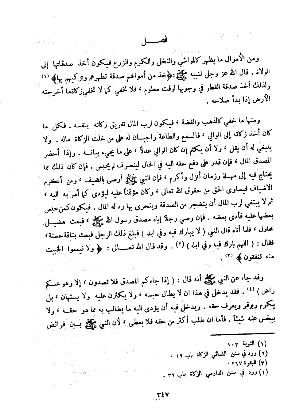 وقد جاء عن النبي صلى الله عليه وسلم أنه قال: (إذا جاءكم المصدق فلا تصدون، إلا وهو عنكم راض). فقد يدخل في هذا أن لا يطال حبسه، ولا يكثرن عليه ولا يستهان، بل يكرم ويوقر ويعرف حقه. ويدخل فيه أن يؤدي إليه ما يطالب به مما هو حقه، ولا يبخس عنه شيئًا. فأما أن طلب أكثر من حقه فلا يعطي، لأن النبي صلى الله عليه وسلم بين فرائض