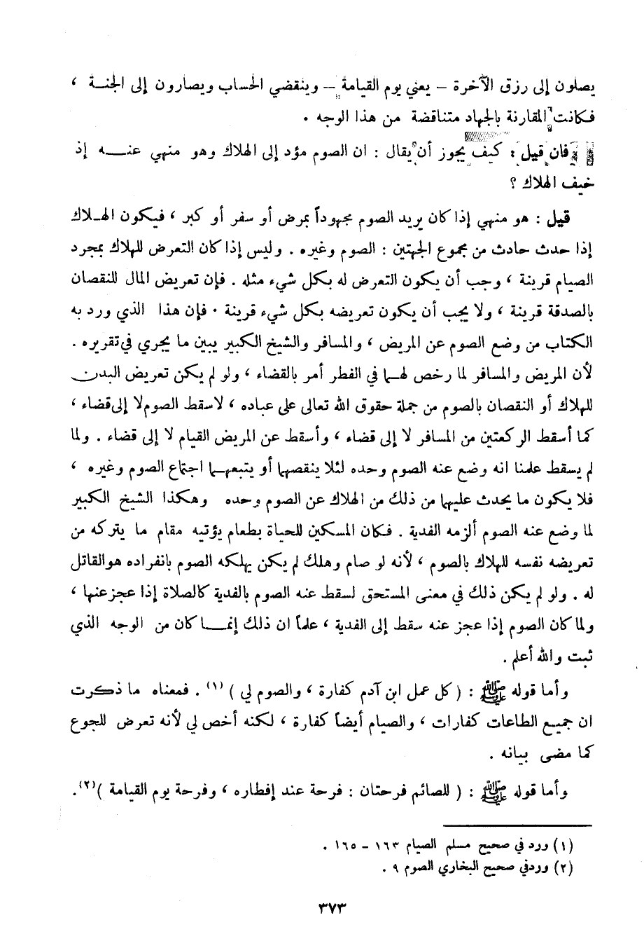 فإن قيل: كيف يجوز أن يقال: أن الصوم مؤد إلى الهلاك وهو منهي عنه إذ خيف الهلاك؟
