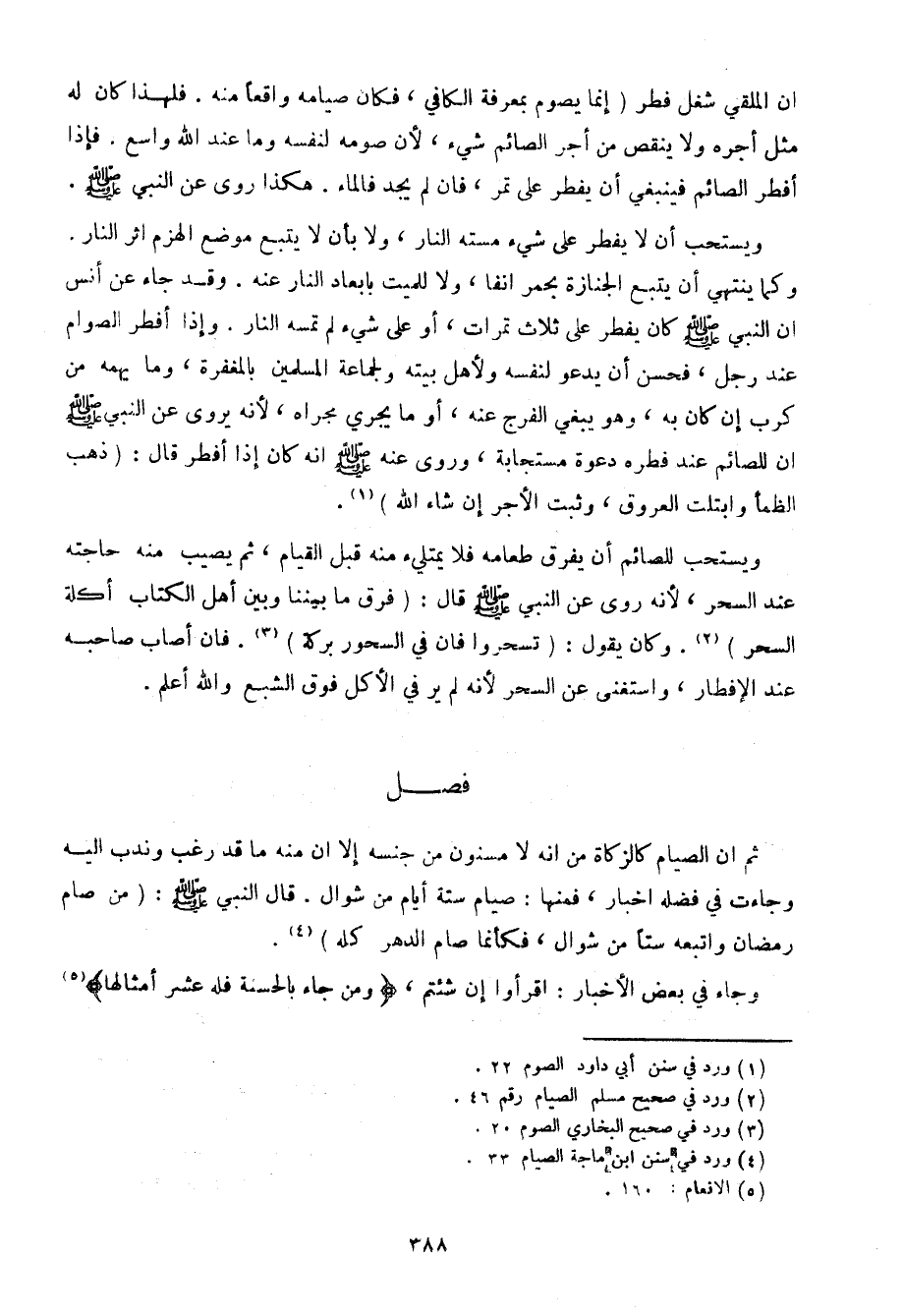 ثم أن الصيام كالزكاة من أنه لا مسنون من جنسه إلا أن منه ما قد رغب وندب إليه وجاءت في فضله أخبار، فمنها: صيام ستة أيام من شوال. قال النبي صلى الله عليه وسلم: (من صام رمضان واتبعه ستًا من شوال، فكأنما صام الدهر كله).