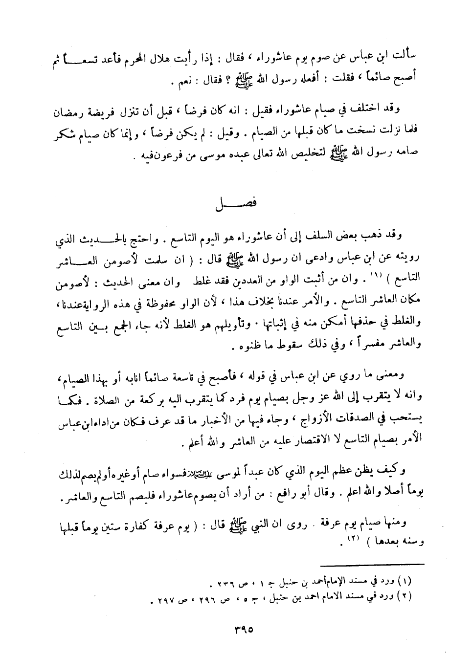 وقد ذهب بعض السلف إلى أن عاشوراء هو اليوم التاسع. واحتج بالحديث الذي رويته عن ابن عباس وادعى أن رسول الله صلى الله عليه وسلم قال: (أن سلمت لأصومن العاشر التاسع). وأن من أثبت الواو من العددين فقد غلط وأن معنى الحديث: لأصومن مكان العاشر التاسع. والأمر عندنا بخلاف هذا، لأن الواو محفوظة في هذه الرواية عندنا، والغلط في حذفها أمكن منه في إثباتها. وتأويلهم هو الغلط لأنه جاء الجمع بين التاسع والعاشر مفسرًا، وفي ذلك سقوط ما ظنوه.