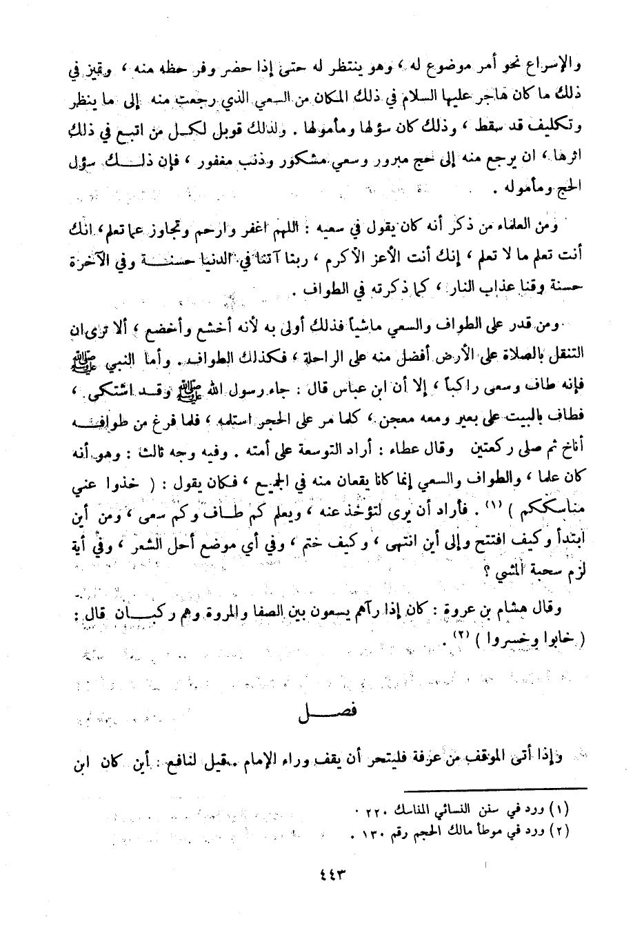 والإسراع نحو أمر موضوع له، وهو ينتظر له حتى إذا حضر وفر حظه منه، وتميز في ذلك ما كان هاجر عليها السلام في ذلك المكان من السعي الذي رجعت منه إلى ما ينظر وتكليف قد سقط، وذلك كان سؤلها ومأمولها. ولذلك قوبل لكل ممن اتبع في ذلك أثرها، أن يرجع منه إلى حج مبرور، وسعي مشكور وذنب مغفور، فإن ذلك سؤل الحج ومأموله.