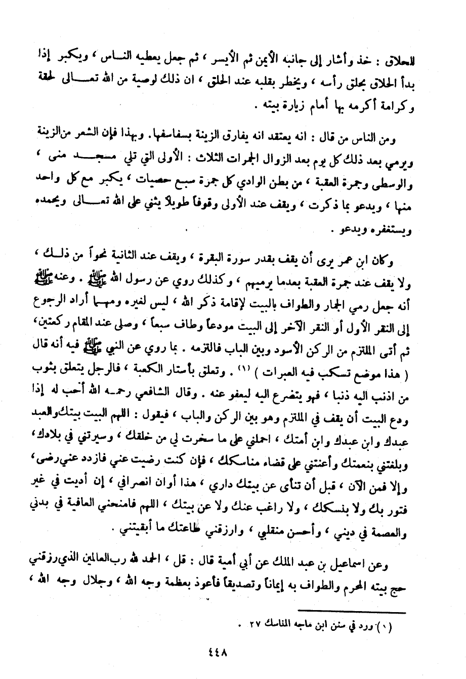 وعن إسماعيل بن عبد الملك عن أبي أمية قال: قل، الحمد لله رب العالمين الذي رزقني حج بيته المحرم والطواف به إيمانًا وتصديقًا فأعوذ بعظمة وجه الله، وجلال وجه الله،