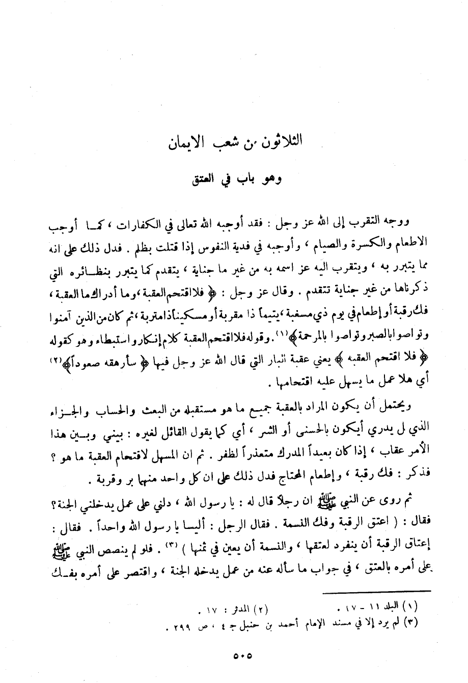 ثم روي عن النبي صلى الله عليه وسلم إن رجلًا قال له: يا رسول الله، دلني على عمل يدخلني الجنة؟ فقال: (اعتق الرقبة وفك النسمة. فقال الرجل: أليسا يا رسول الله واحدًا. فقال: إعتاق الرقبة أن ينفرد لعتقها، والنسمة أن يعين في ثمنها). فلو لم ينصص النبي صلى الله عليه وسلم على أمره بالعتق، في جواب ما سأله عنه من عمل يدخله الجنة، واقتصر على أمره بفك