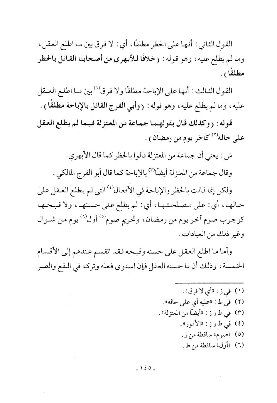 ش: يعني أن جماعة من المعتزلة قالوا بالحظر كما قال الأبهري