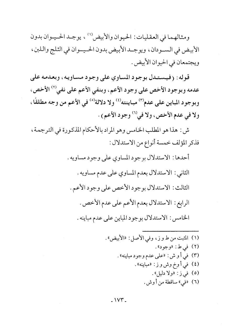 ش: هذا هو المطلب الخامس وهو المراد بالأحكام المذكورة في الترجمة، فذكر المؤلف خمسة أنواع من الاستدلال: