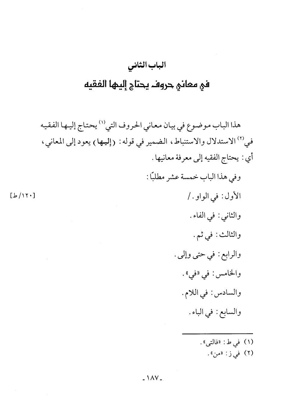 الباب الثاني في معاني حروف يحتاج إليها الفقيه
