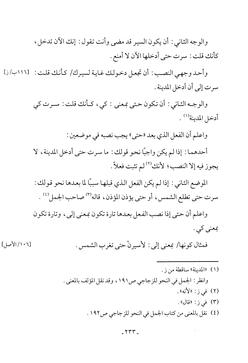 (٤) نقل بالمعنى من كتاب الجمل في النحو للزجاجي ص ١٩٢.