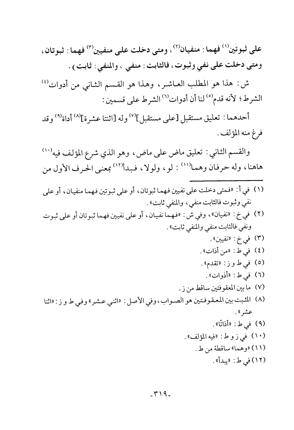 أحدهما: تعليق مستقبل [على مستقبل] (٧) وله [اثنتا عشرة] (٨) أداة (٩) وقد فرغ منه المؤلف.