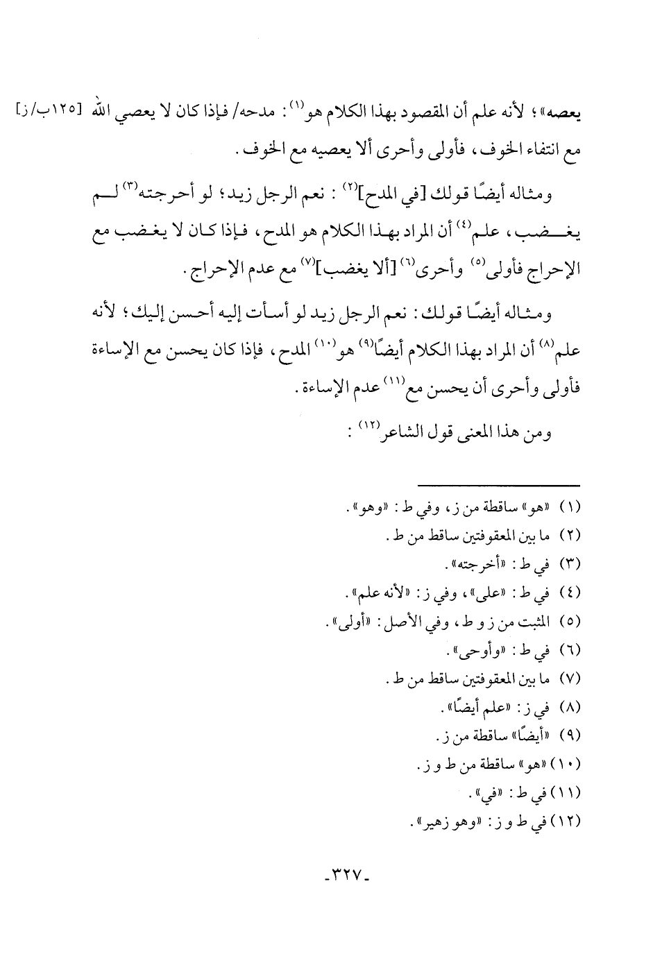 ومثاله أيضًا قولك: نعم الرجل زيد لو أسأت إليه أحسن إليك؛ لأنه علم (٨) أن المراد بهذا الكلام أيضًا (٩) هو (١٠) المدح، فإذا كان يحسن مع الإساءة فأولى وأحرى أن يحسن مع (١١) عدم الإساءة.