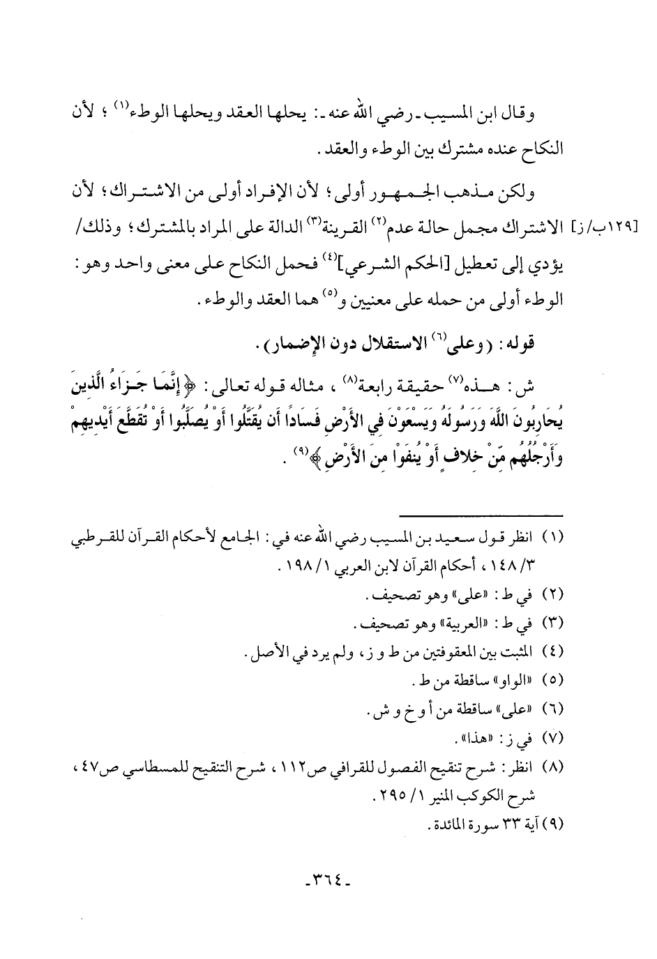 (٨) انظر: شرح تنقيح الفصول للقرافي ص ١١٢، شرح التنقيح للمسطاسي ص ٤٧، شرح الكوكب المنير ١/ ٢٩٥.