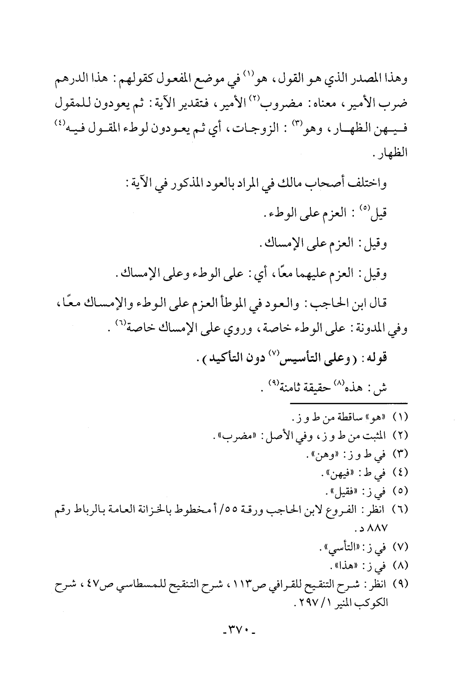 (٩) انظر: شرح التنقيح للقرافي ص ١١٣، شرح التنقيح للمسطاسي ص ٤٧، شرح الكوكب المنير ١/ ٢٩٧.
