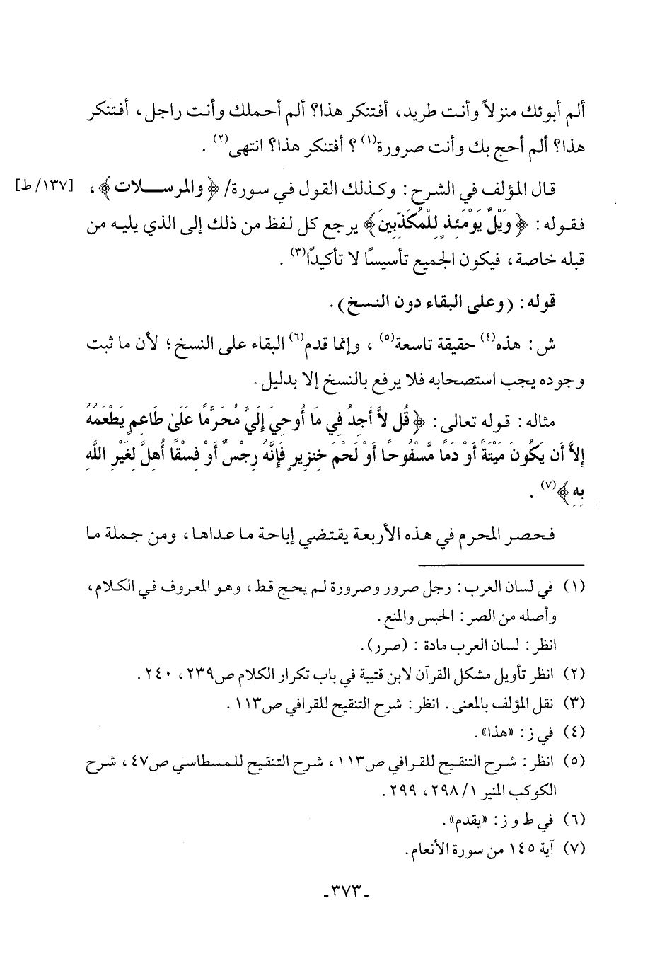 (٥) انظر: شرح التنقيح للقرافي ص ١١٣، شرح التنقيح للمسطاسي ص ٤٧، شرح الكوكب المنير ١/ ٢٩٨، ٢٩٩.