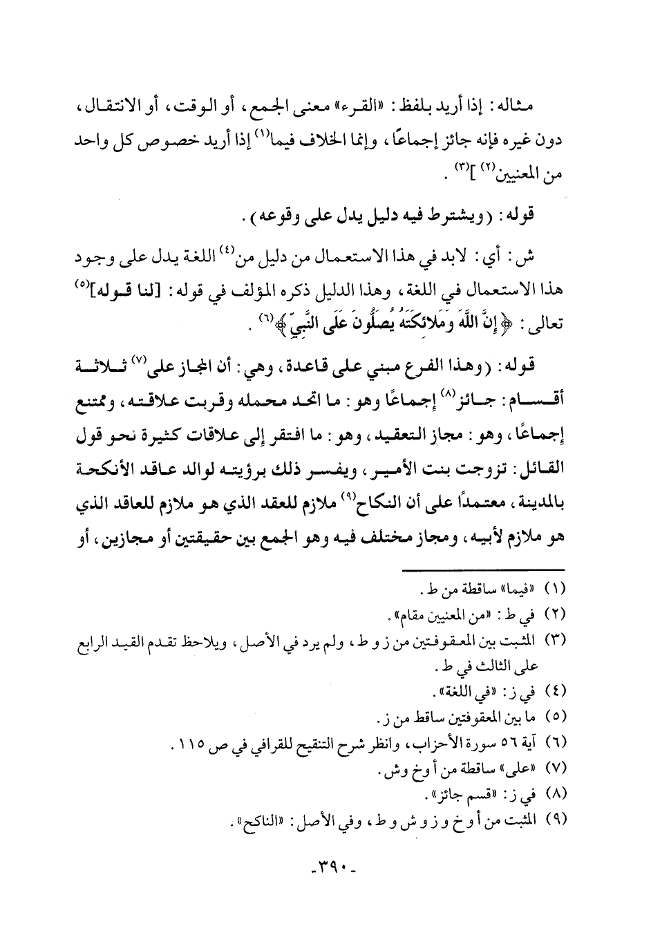 (٦) آية ٥٦ سورة الأحزاب، وانظر شرح التنقيح للقرافي في ص ١١٥.