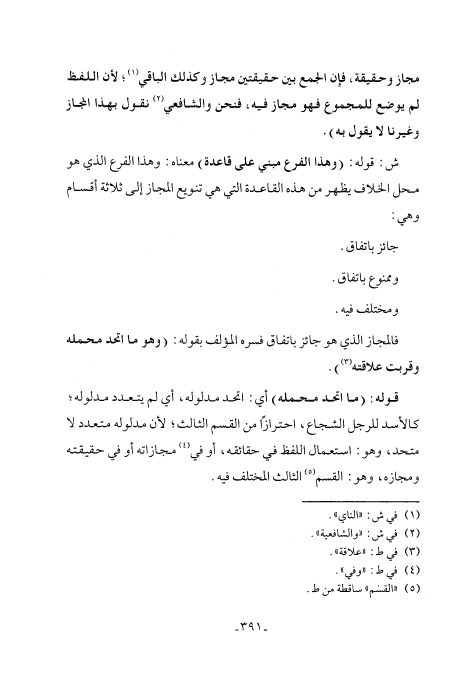 ش: قوله: (وهذا الفرع مبني على قاعدة) معناه: وهذا الفرع الذي هو محل الخلاف يظهر من هذه القاعدة التي هي تنويع المجاز إلى ثلاثة أقسام وهي: