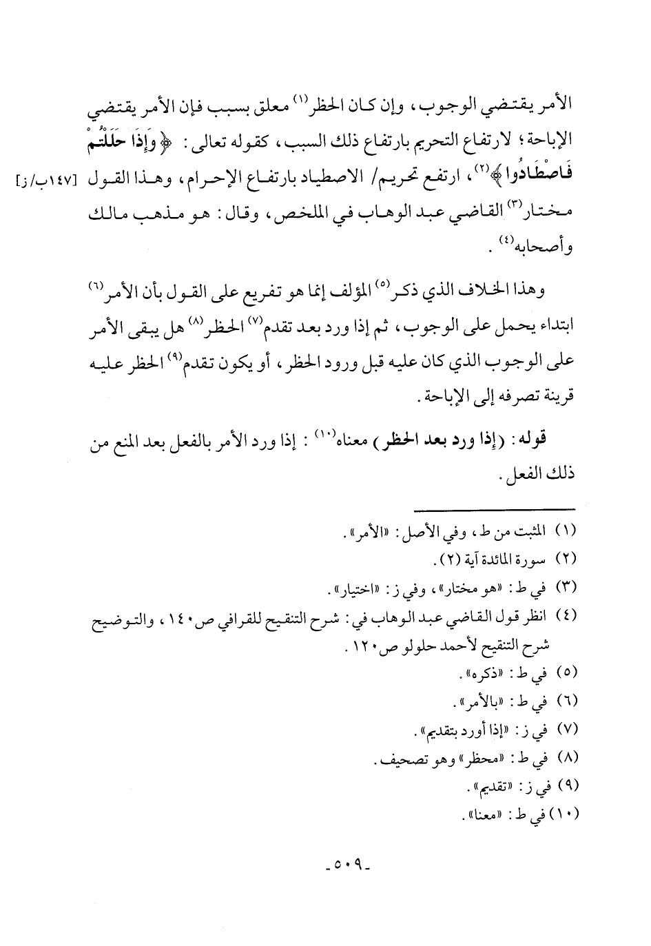 (٤) انظر قول القاضي عبد الوهاب في: شرح التنقيح للقرافي ص ١٤٠، والتوضيح شرح التنقيح لأحمد حلولو ص ١٢٠.